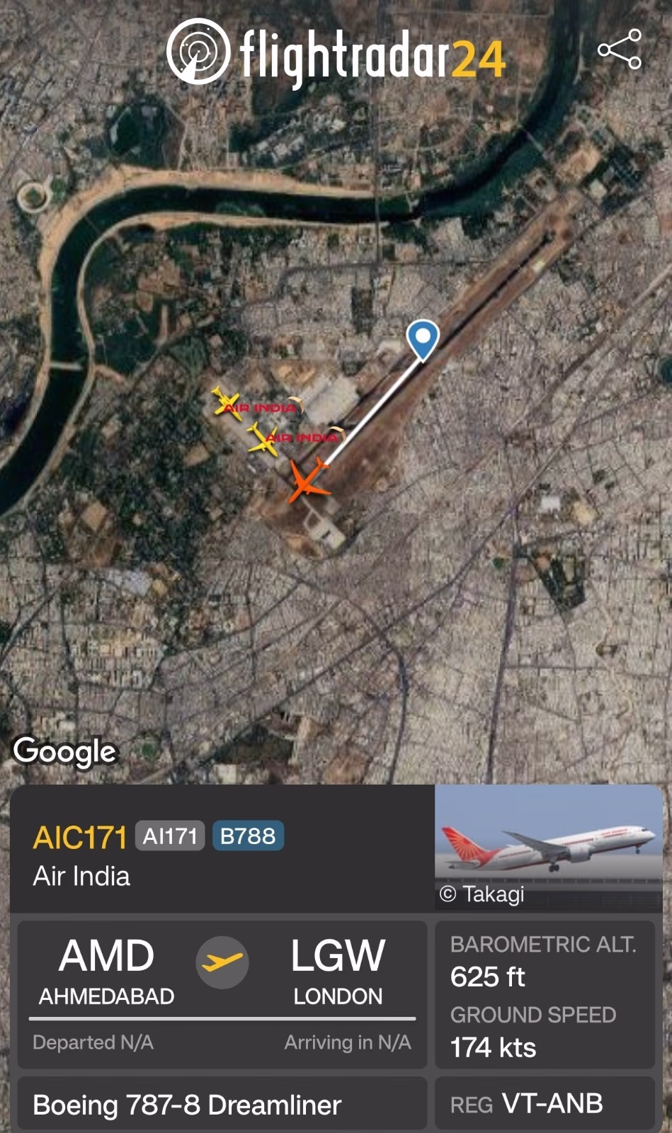 An Air India flight from Ahmedabad to London has crashed in the Megnaninagar area of Ahmedabad. Reports suggest the plane crashed immediately after takeoff, igniting into flames. Gripping images from Ahmedabad show the aircraft oozing dense black smoke. Seven fire brigade trucks have arrived and are actively engaged in putting out the fire. There were a total of 242 people on board the aircraft. This Boeing 787-8 Dreamliner was 11 years old. When the plane lost its signal, it was around 625 feet above sea level. The pilot flying the plane was Captain Sumit Sabherwal, accompanied by First Officer Kundan.