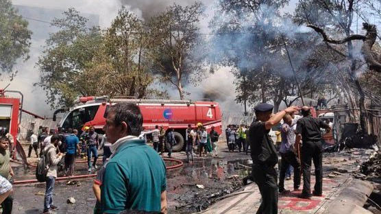 Following the crash, a nearby building, which housed medical professionals, caught fire too. The scene at the crash site is grim, with everything appearing covered in soot. The aircraft was consumed by flames, leaving no visible remains.