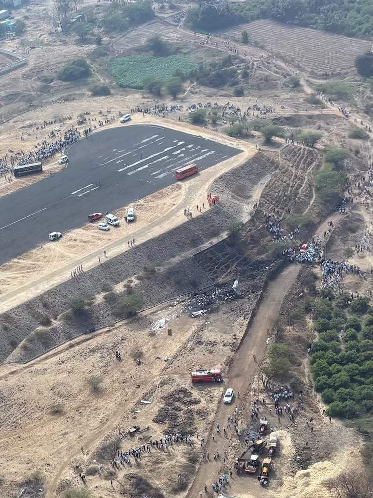 Firefighters had subdued the blaze and departed, yet throughout Wednesday the crash site saw an assembly of party supporters, locals, officials, forensic teams, and aviation ministry personnel. Nearby, less than 100 feet from the runway, this barren area with shrubs and grasses is now etched in memory as the site where the Pawar family heir and four others met their untimely fate.