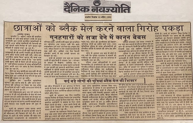 More than 100 girls aged 17 to 20 from various schools in Ajmer were trapped into a web, blackmailed with their nude photos, and sexually exploited. The newspaper revealed that the offenders were influential in religious, political, social, and economic realms, causing a massive uproar in governance.