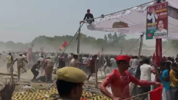 During a rally in the Lalganj Lok Sabha constituency for Akhilesh, the situation once again spiraled into pandemonium. A video has surfaced where supporters trying to approach the stage were pushed back, resulting in a chaotic scramble. The loudspeaker stands also collapsed in the frenzy. Moreover, as the frontline supporters were driven back, those at the rear also fled the scene rapidly.