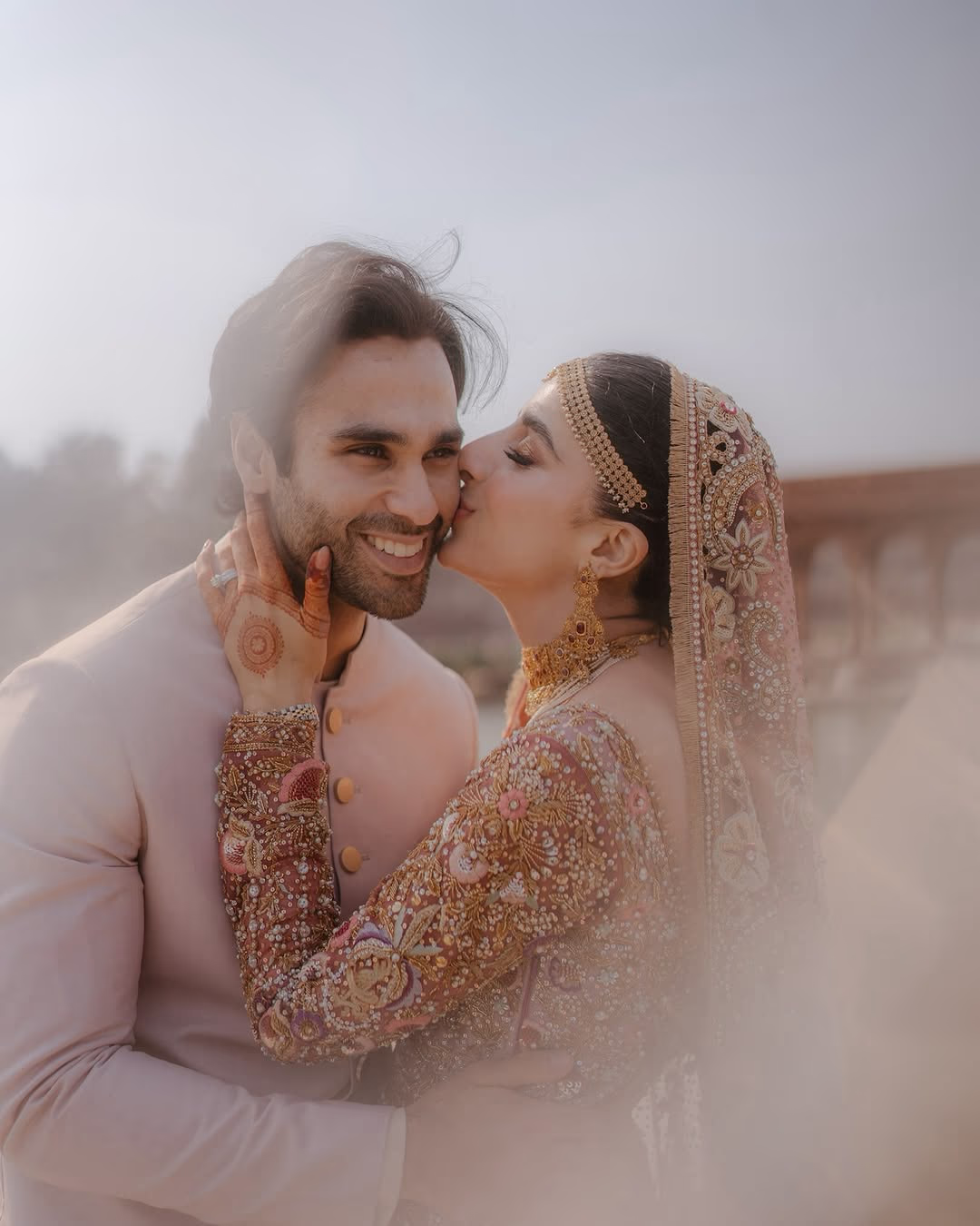 The wedding photos of 28-year-old Ameer Gilani and Mawra are making the rounds on social media. Their wedding was akin to a fairy tale, with many enchanting moments between the bride and groom captured. Mawra's sister Urwa Hocane and brother-in-law Farhan Saeed were also seen having fun with the couple.