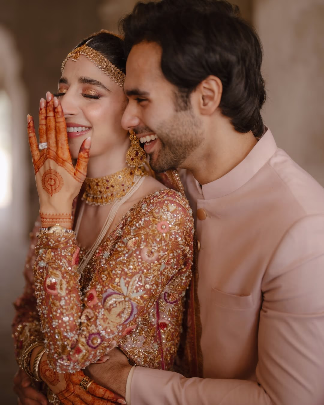 Ameer and Mawra shared some unseen moments from their nuptials on social media. In these, the bride Mawra can be seen laughing alongside her sister Urwa and brother-in-law Farhan. Their bond is incredibly strong.
