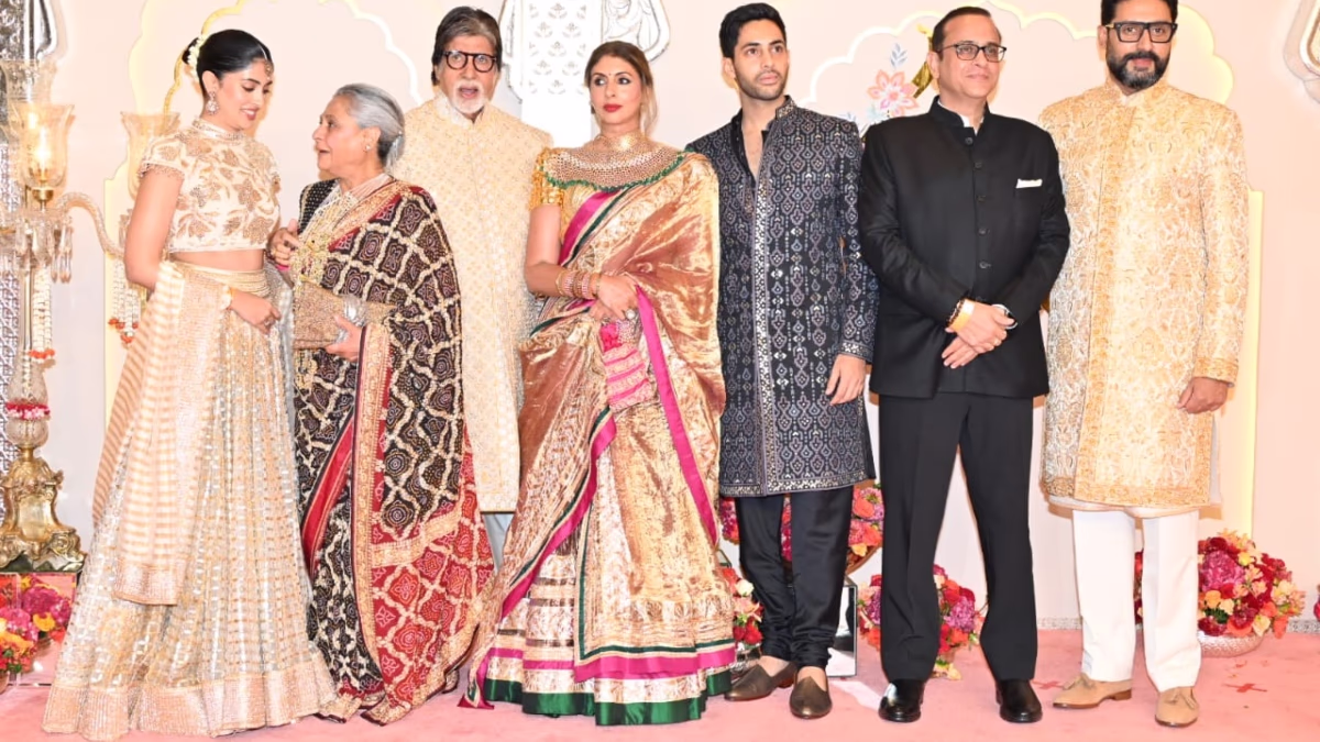 The iconic Amitabh Bachchan attended the wedding at the Jio World Convention Centre with his entire family in tow.
