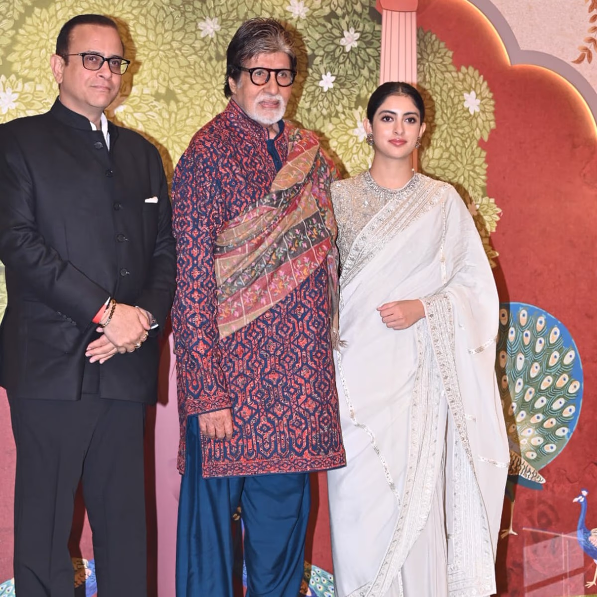Amitabh Bachchan arrived with his granddaughter Navya Naveli Nanda and son-in-law Nikhil Nanda to join in the festivities of Anant-Radhika's ceremony.
