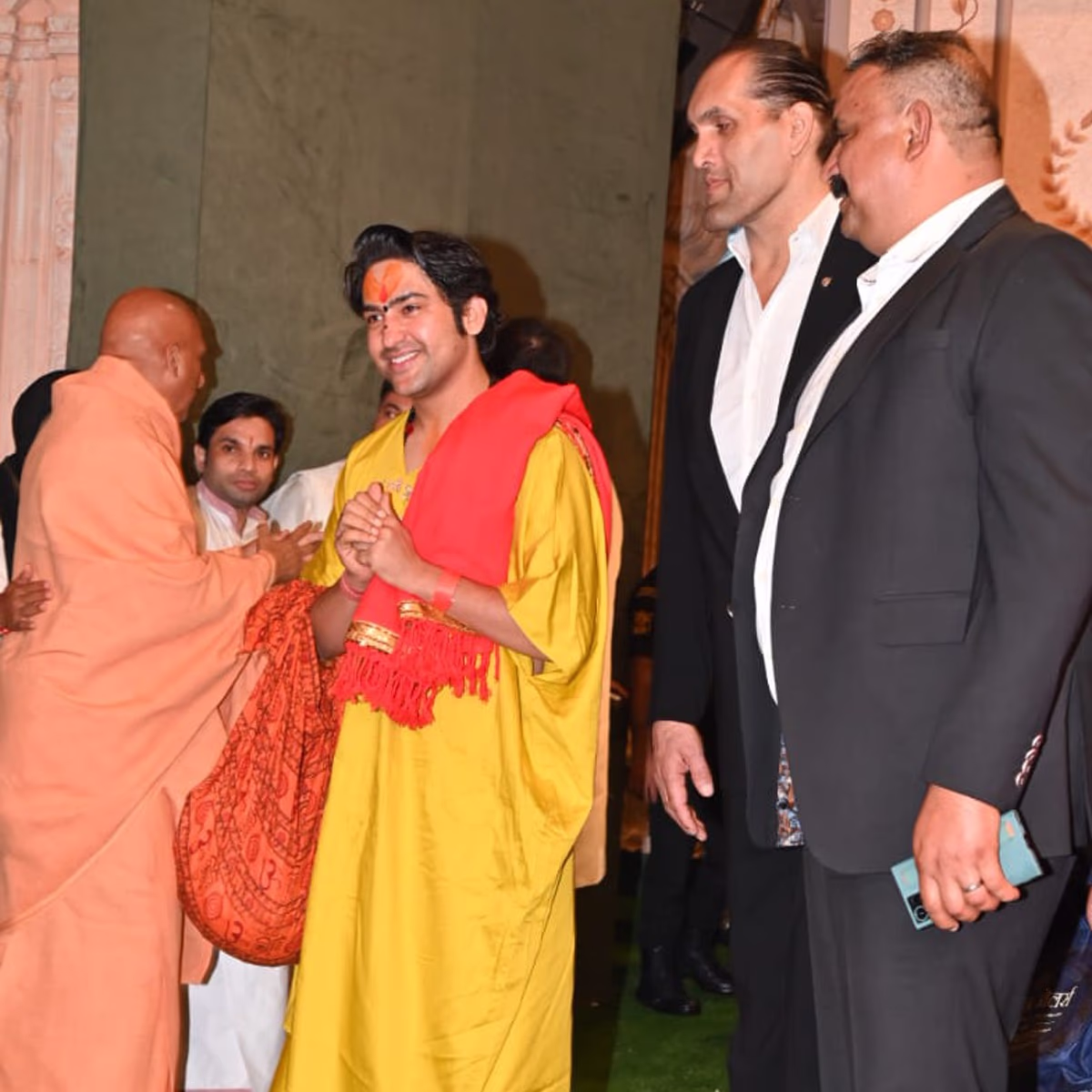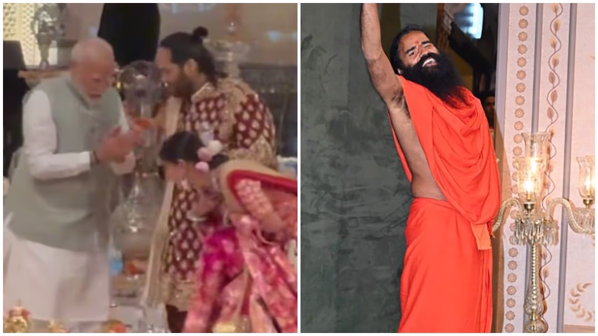 Baba Ramdev marked his presence at the Ambani's 'blessing' event, greeted warmly by the attendees in his signature attire.
