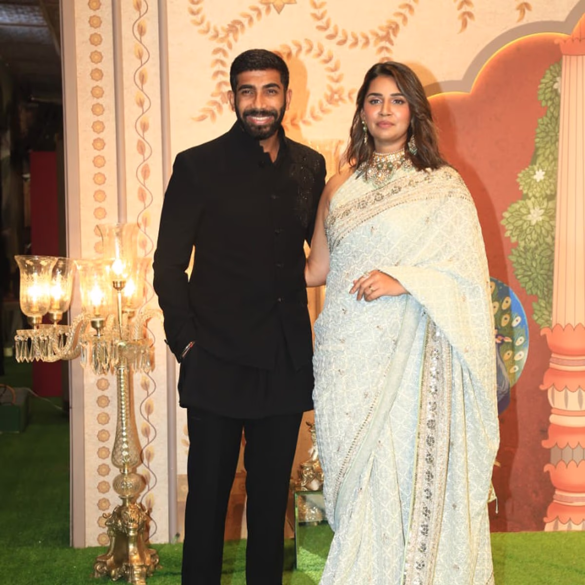 Cricketer Jasprit Bumrah and his wife Sanjana Ganesan took part in Anant and Radhika's 'blessing' event.