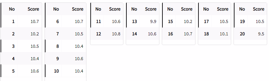 Second Series: 10.7, 10.5, 10.4, 10.6, 10.4, Total: 52.6 points