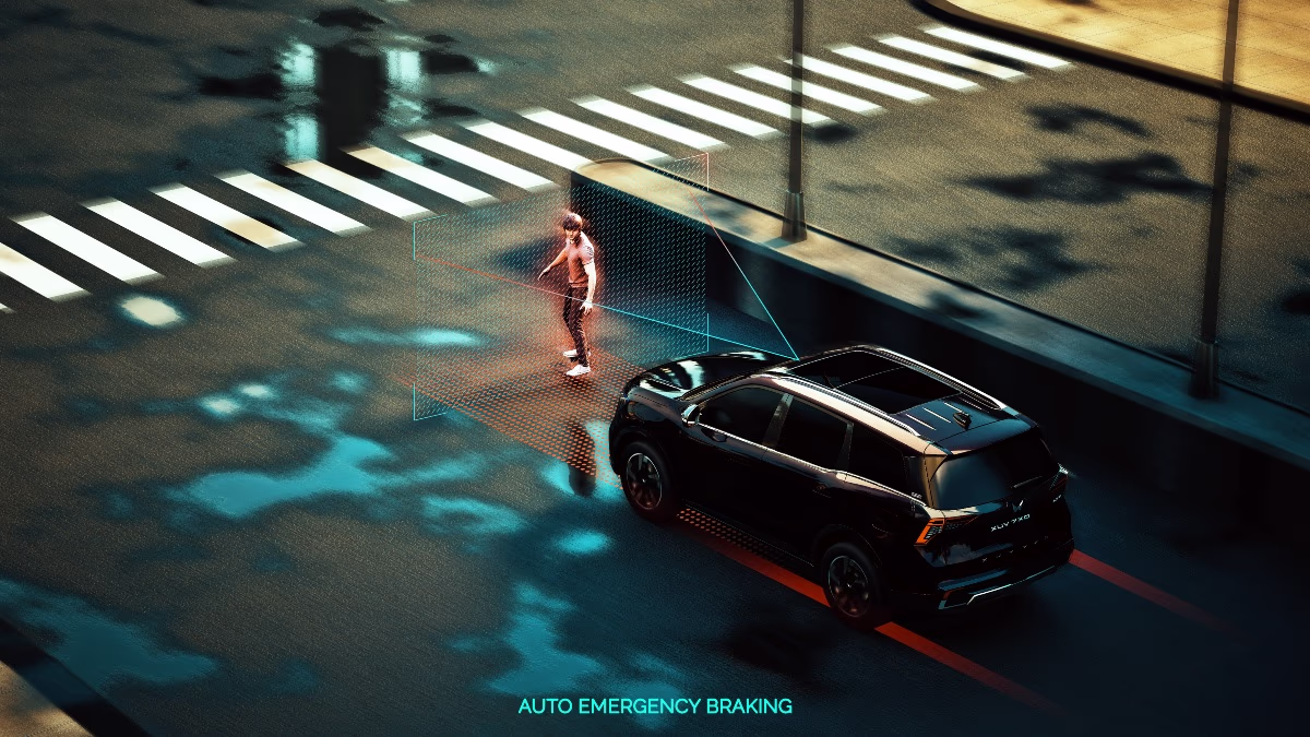 The Mahindra XUV 7XO touts over 120 safety features, with 75 as standard across all variants. It includes 6 airbags, ESP, hill descent control, and tire pressure monitoring. The top variant features 7 airbags, including curtain airbags extending to the third row. Mahindra states the SUV is engineered with a 5-star Indian NCAP rating in mind. (Photo: auto.mahindra.com)