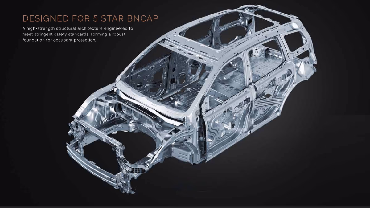 This SUV is equipped with Mahindra's new DAVINCI suspension system, utilizing valve-based damping technology, being introduced globally with this model. A promotional video during launch demonstrated the vehicle's smooth ride, balancing a wine glass on the moving SUV.