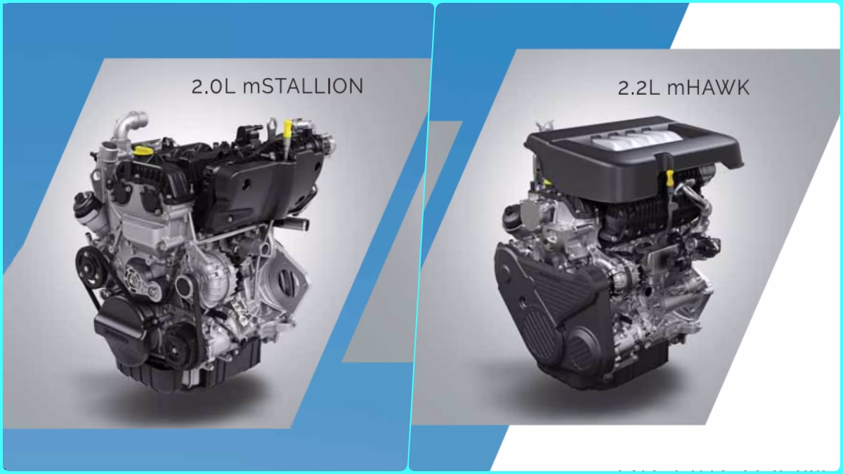 The Mahindra XUV 7XO offers two engine options: a 2.0-liter mStallion turbo petrol engine and a 2.2-liter mHawk turbo diesel engine. The petrol manual variant accelerates from 0 to 60 km/h in less than 5 seconds. Both engines are available with 6-speed manual and 6-speed automatic transmissions. It includes Zip, Zap, and Zoom drive modes with a custom mode as well.