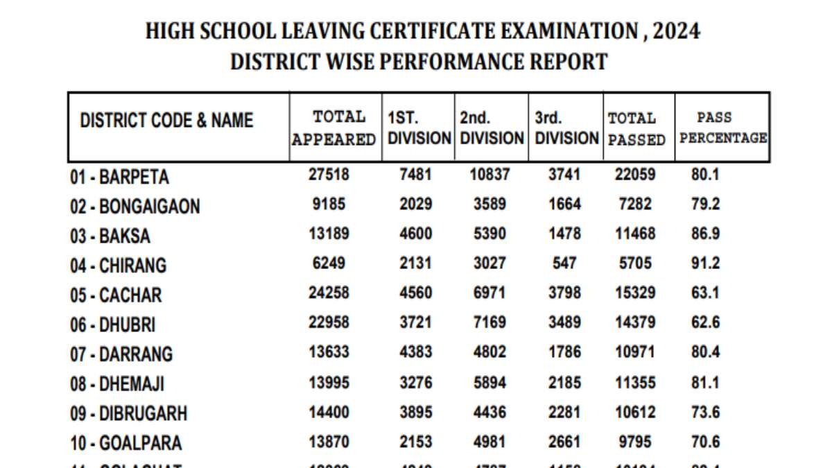 SEBA Assam HSLC 10th Result 2024: Top Performs in These 10 Districts
