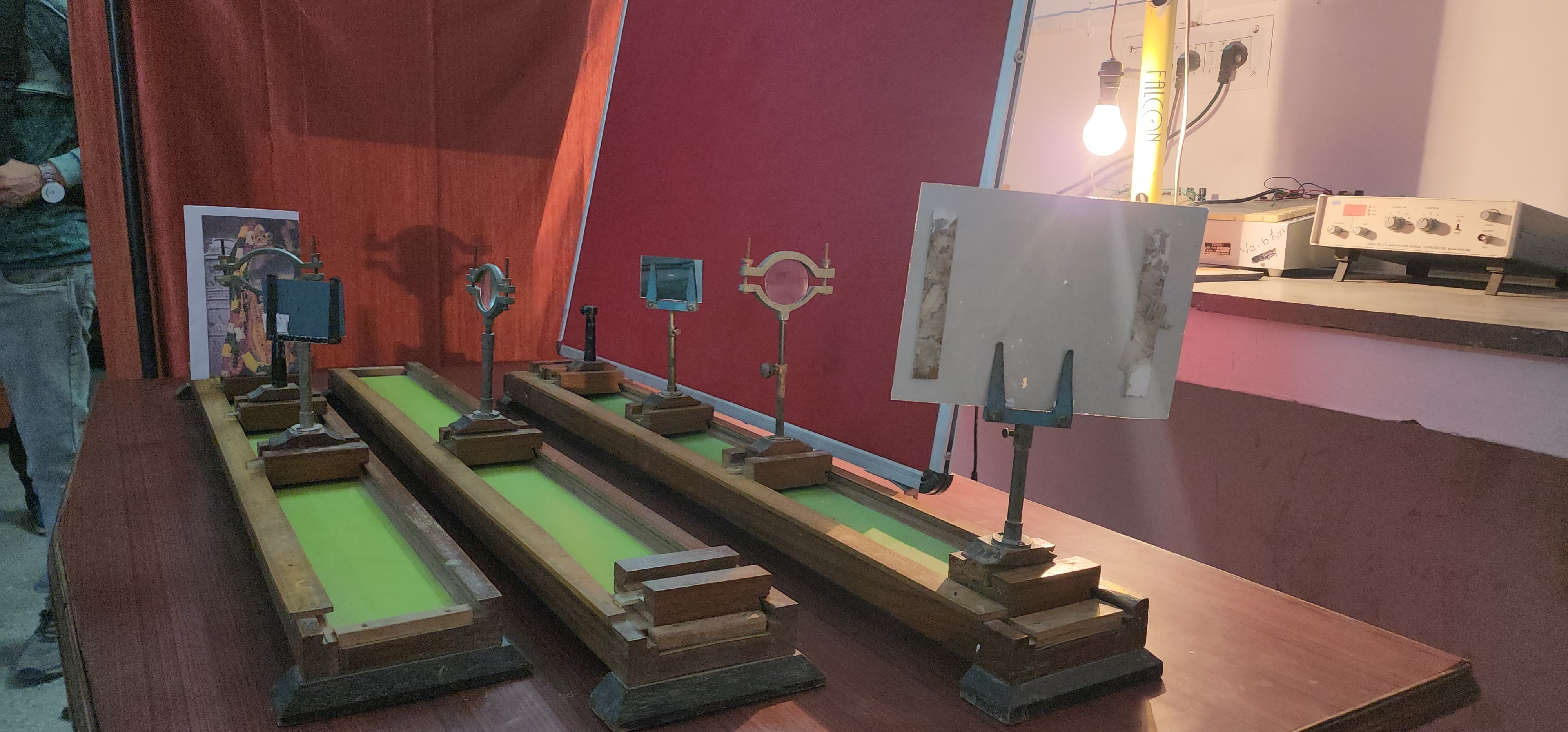 Implementing the laws of light reflection, students and professors from Dr. Ram Manohar Lohia Avadh University's Science Department have together crafted a model for the solar anointment in the Shri Ram Temple. This apparatus employs a bulb instead of the sun, demonstrating light refraction through various lenses to simulate the celestial event. The significant variation in this model lies in the absence of metal pipes and the use of a bulb to replicate the sun's energy.