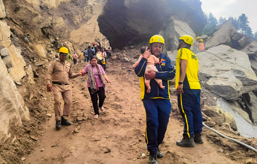 Pedestrian travelers find angels in the SDRF and NDRF. Both forces have initiated foot transit in the evening through the Badrinath route. People embarking on their journey with small children and elderly parents are receiving assistance from SDRF and NDRF to safely cross this path, as it's unpredictable when the steep incline might give way.