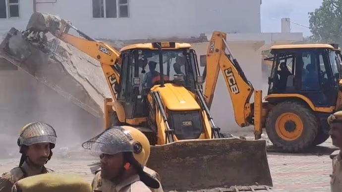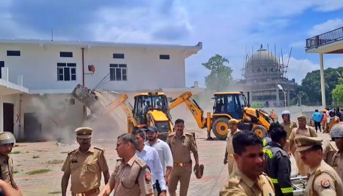 In Balrampur, Uttar Pradesh, a bold demolition action has started against the grand mansion of Jamaluddin, alias Changur Baba, who operated an illegal conversion gang. The mansion was illegally constructed. It is said that this is the very mansion where Changur Baba lived with his gang and orchestrated his unlawful endeavors.