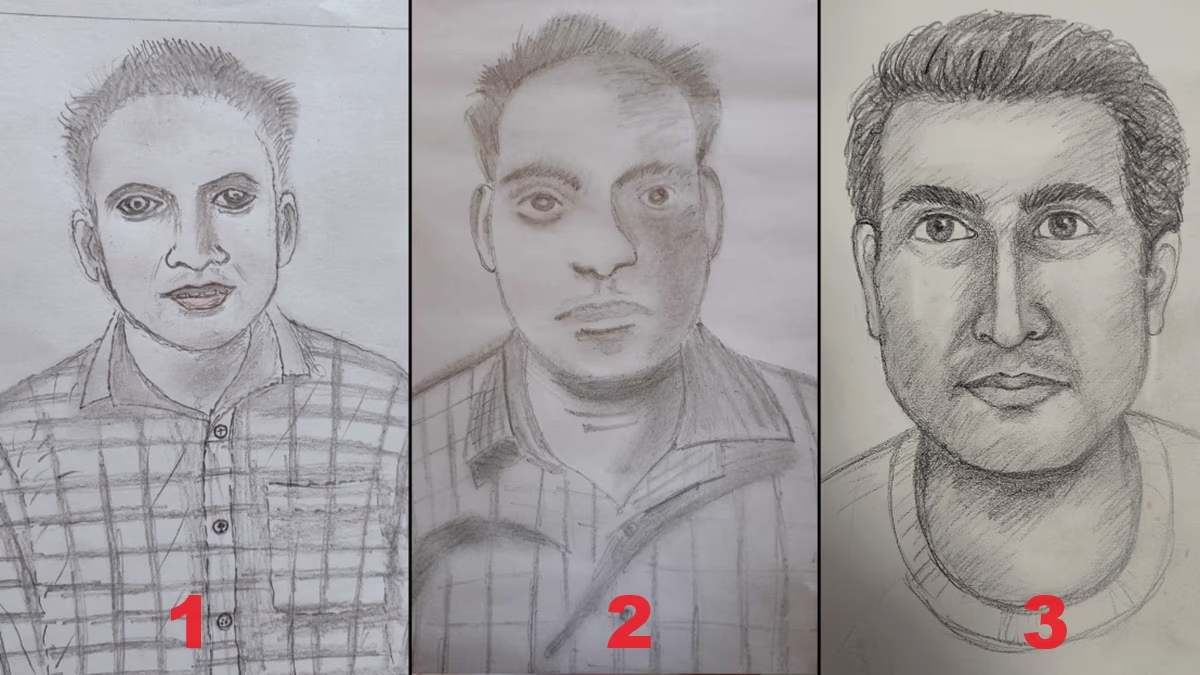 The police released sketches, based on witnesses' descriptions from villages near the crime scenes. In two out of three sketches, the killer's features match - wide forehead, short hair, round face, big eyes, and flat nose, wearing a check shirt.