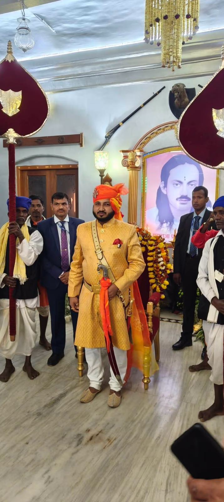 For the first time, the sacred sceptre and umbrella of the Bastar royal family's presiding deity, Ma Danteshwari, have been incorporated into a wedding. These sacred objects, typically seen only during the Dussehra and Fagun Madai festivals, have been transported to Jagdalpur with great solemnity.