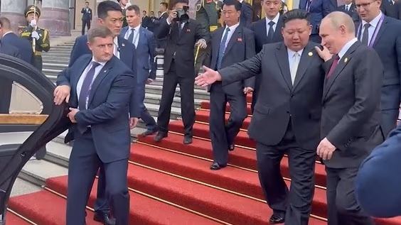 Post their interaction, Kim Jong Un, embracing Putin, expressed a desire to meet soon, to which Putin extended an invitation to visit Russia, warmly saying, "We await your visit."