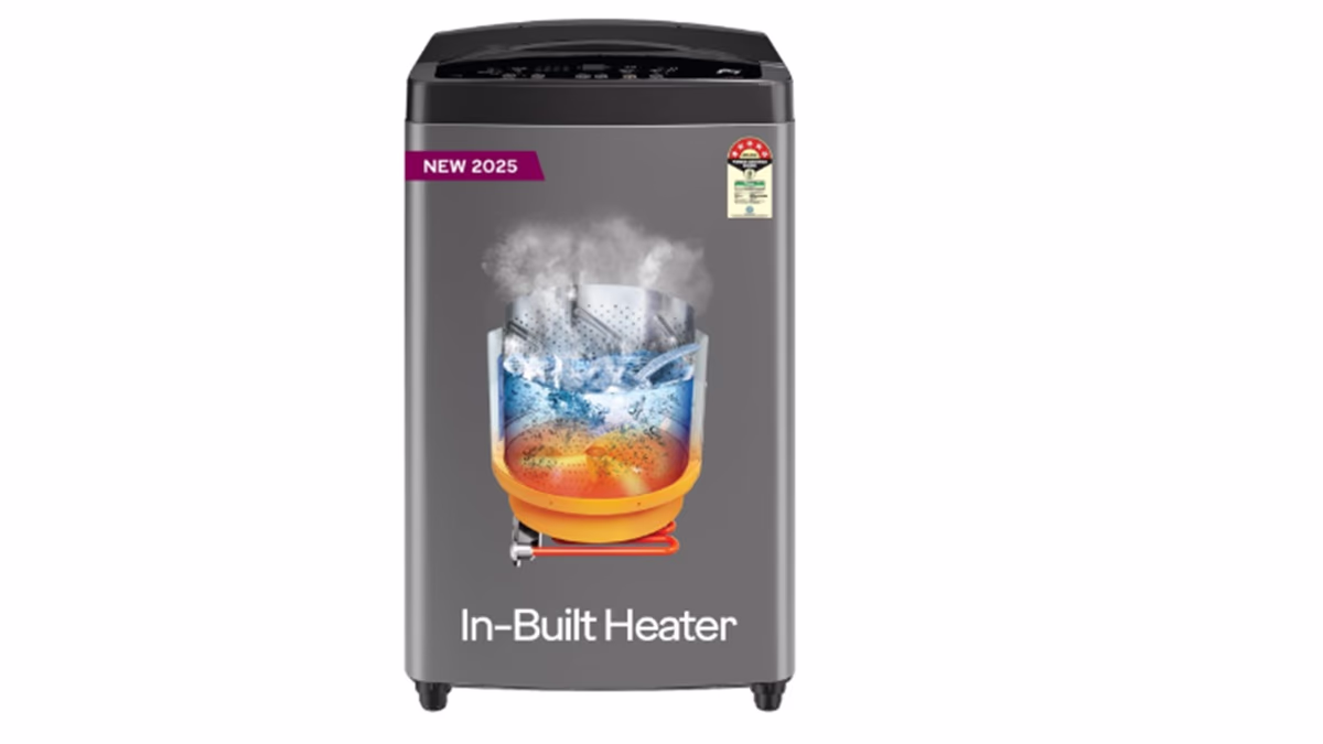 The Realme TechLife 8KG top-loaded washing machine is available at 12,870 rupees. It features a maximum speed of 7000 RPM and has earned a 5-star rating for power saving—perfect for sustainable living.