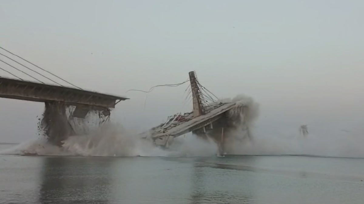 The video clearly shows that the superstructure of the under-construction bridge has fallen. While the exact reason for the collapse is yet to be clarified, it is reported that the structure over three pillars crumbled. The bridge, situated in Sultanganj, Bhagalpur, was meant to connect Khagaria and Bhagalpur.