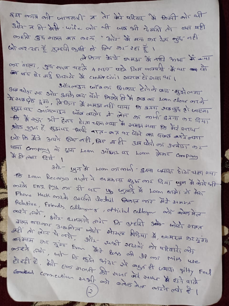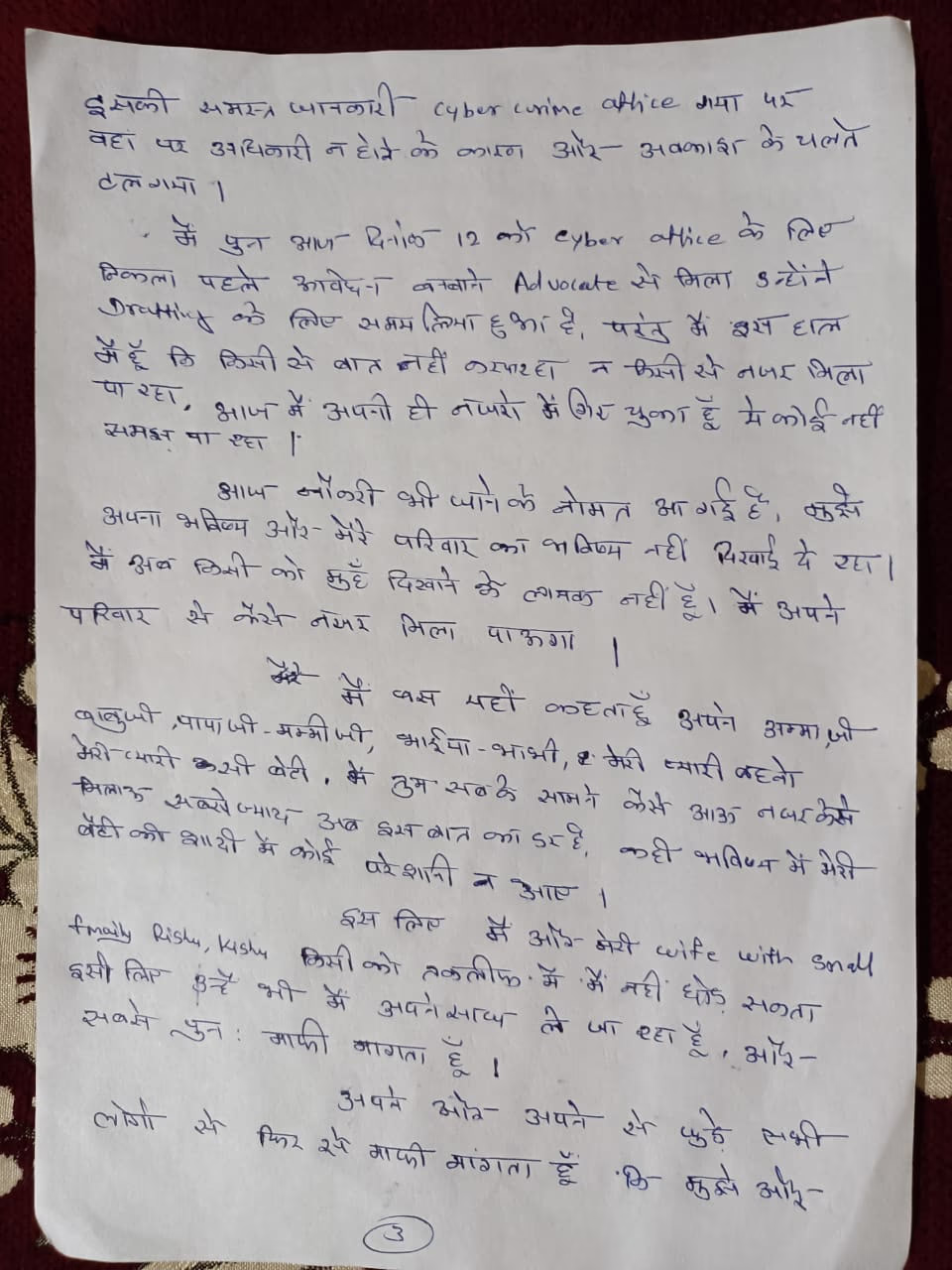 Further into the suicide note,'I went to the cybercrime office, but the case was delayed due to absence or holidays. I tried again and met a lawyer for an application draft. They needed time for drafting. I found myself unable to talk to anyone or even meet their gaze. No one could grasp how much I had fallen in my own eyes.