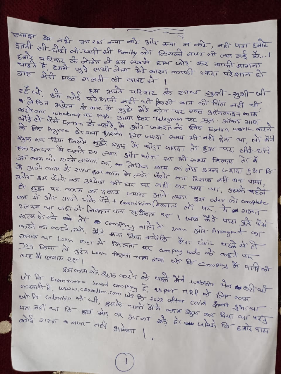 The suicide note further reads, 'Before starting this work, I checked the e-commerce company's website. The company did TRP work, starting in 2022 from Colombia following COVID. Based on this, I began working, unknowing we'd reach such a deadlock, leaving us no escape.