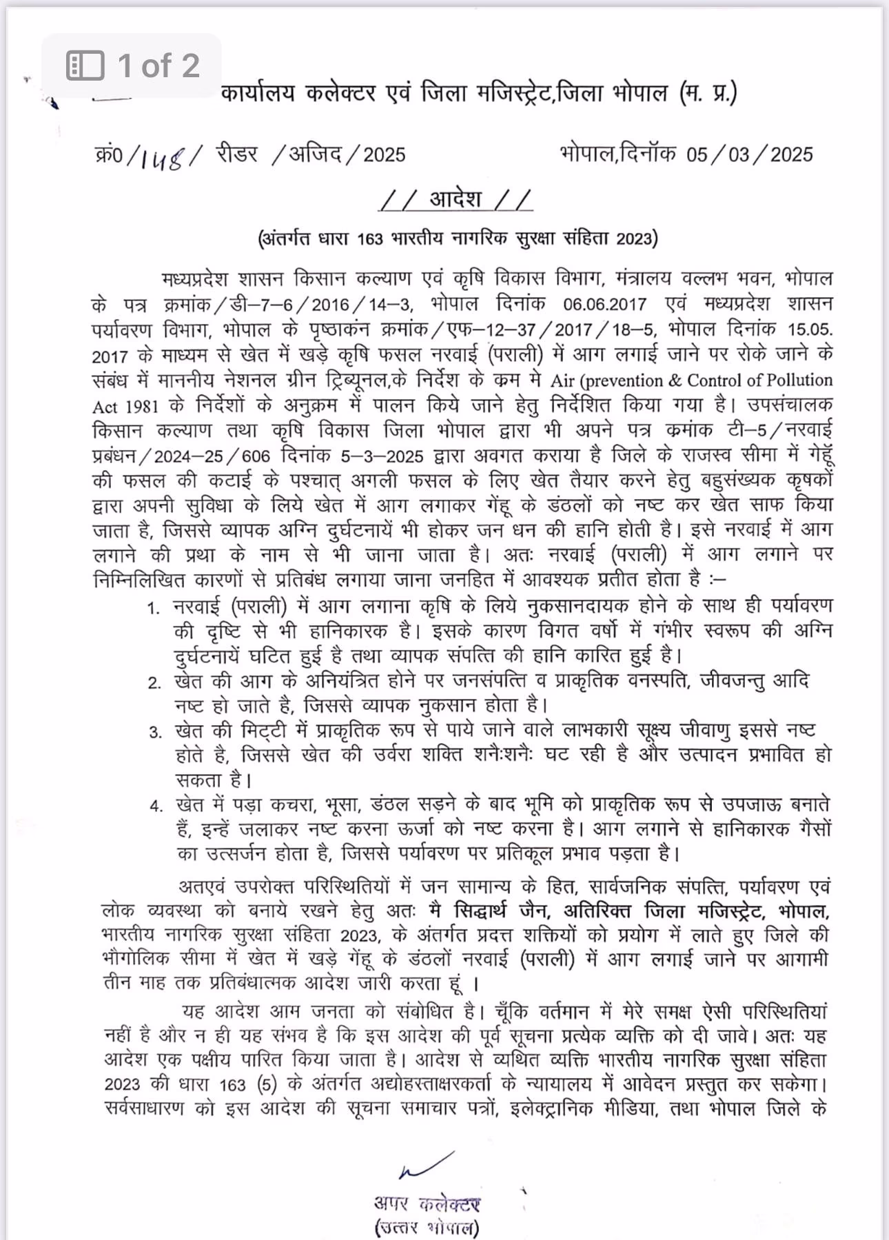 It’s important to note that Bhopal has witnessed extensive stubble burning. This practice often results in fires that spread to residential zones. Previous bans have been implemented in the region too. Just three months ago, Collector Kaushalendra Vikram Singh enforced a similar ban under National Green Tribunal (NGT) guidelines, which remains in effect.