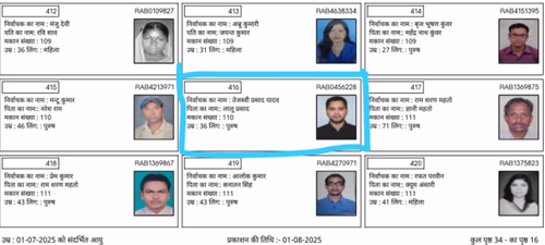 However, the Election Commission quickly fact-checked Tejashwi Yadav's claims and confirmed that his name is indeed in the draft voter list. The commission released a version of the voter list showing his name, photo, age, father's name, and house number. Responding to RJD leader’s allegations, the Election Commission promptly shared data clarifying, 'Tejashwi Yadav alleged that his name was struck from the list. We have shared the list and request him to carefully check his details.' The records shared by the commission showed Tejashwi Yadav’s ECIP No. RAB0456228. His name appears at serial number 416 in the draft voter list.