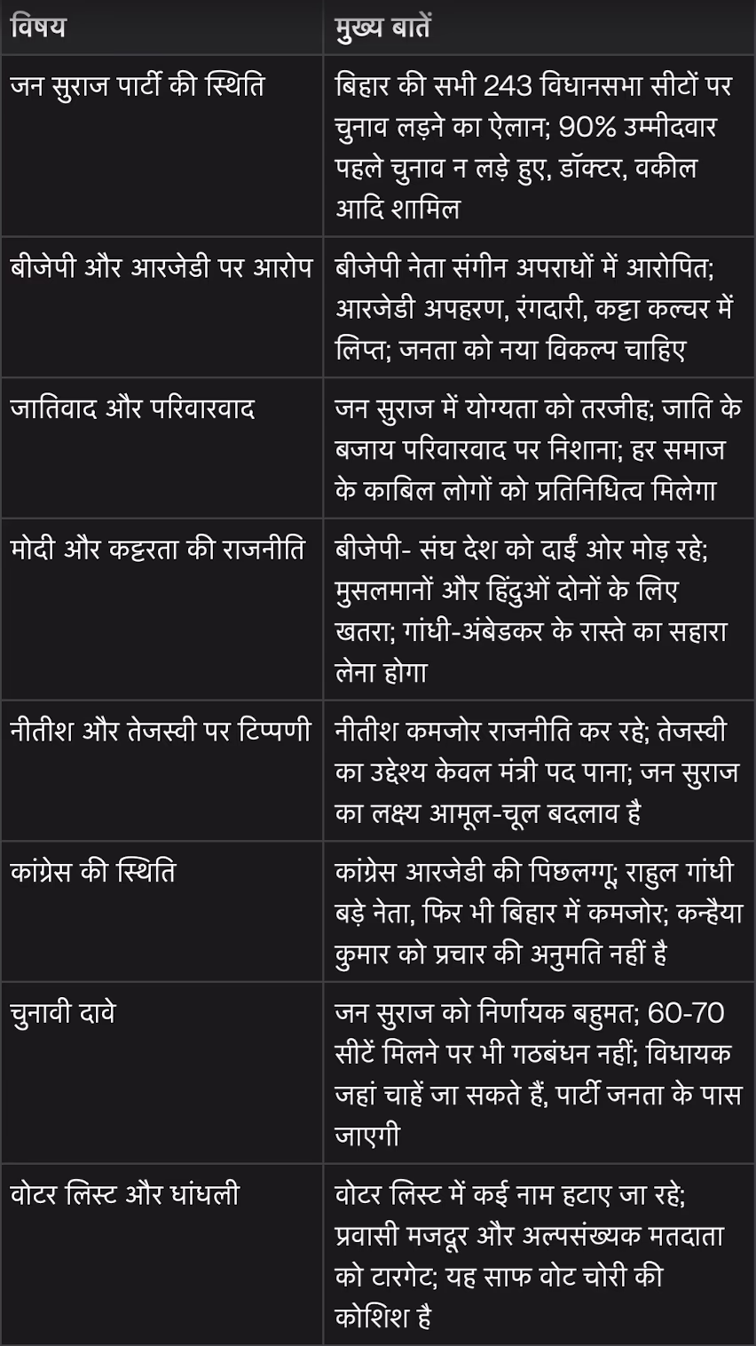 Kishor raised concerns about the voter list reforms in Bihar, accusing the government and administration of manipulating it for political gain. He alleged that names of migrant workers and minority voters are being removed, terming it a clear attempt at voter fraud.