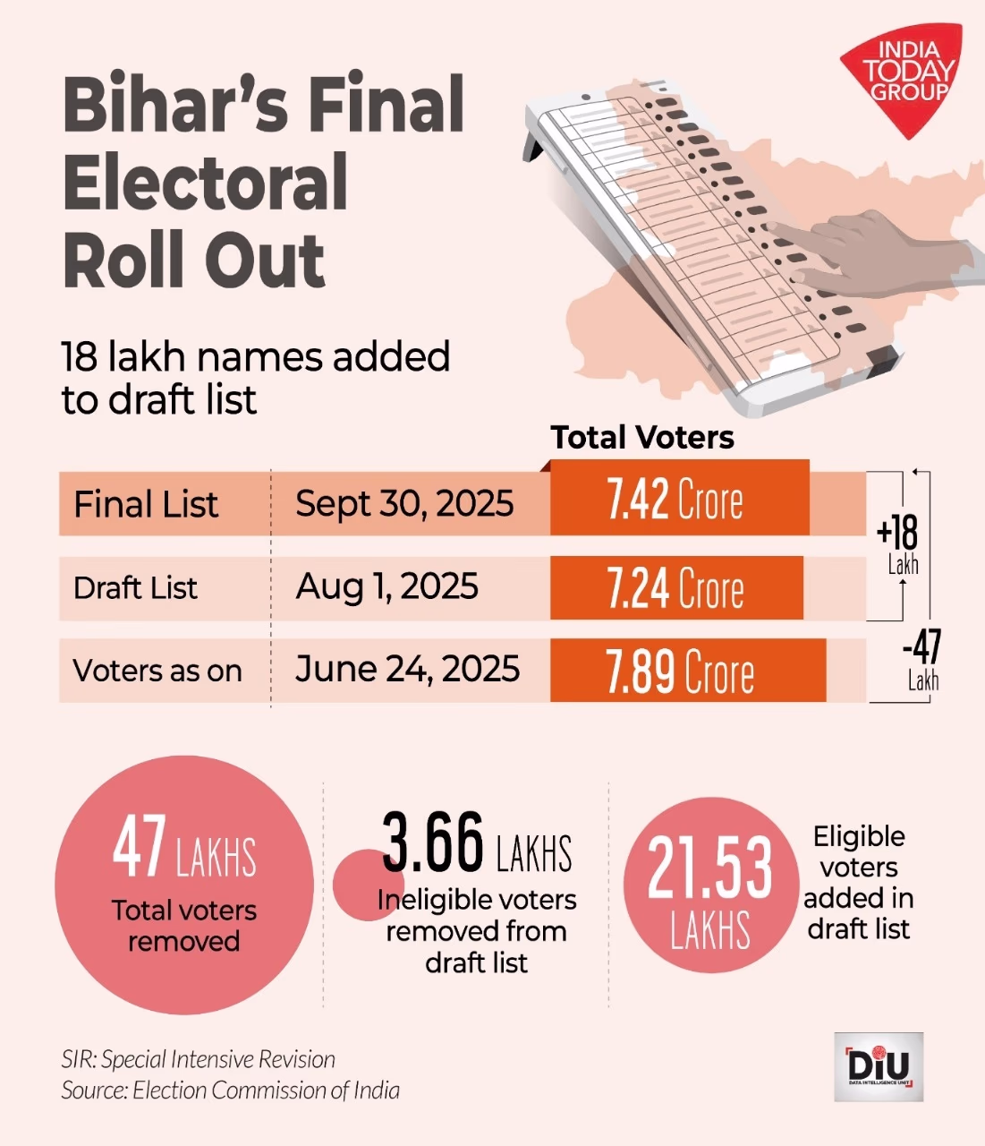 Statistics from the Election Commission reveal that 366,000 names from the draft roll were invalidated in the final voter list, while 2.153 million new voters registered through Form 6. To verify their names, people can visit voters.eci.gov.in.