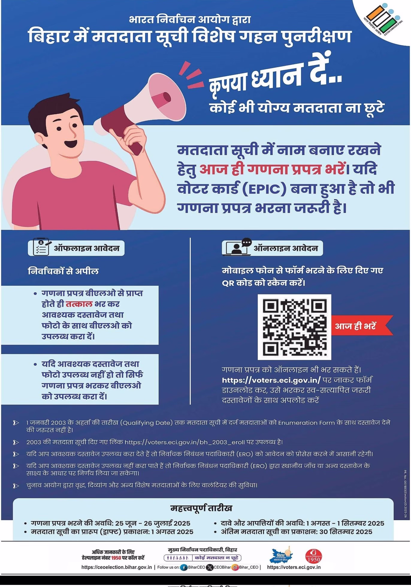 Concerning questions about the voter list, he said, 'Many issues find their solutions within the Election Commission's orders. For example, the 2003 voter list for Bihar, which dates back 22 years, falls under the Constitution's Article 326 and will be considered eligible. This means that those already listed do not need to submit any documents, and the children of voters listed will not require parental documents either. As for the time frame, during the intensive scrutiny of Bihar's voter list in 2002, it spanned from July 15 to August 14; this time, it's also within 31 days from June 24 to July 25.'