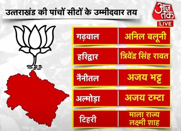In Uttarakhand, there are five Lok Sabha constituencies. Two candidates were declared in this second list, with three having been announced previously. With this, the BJP has finalized candidates for all five seats in the state.