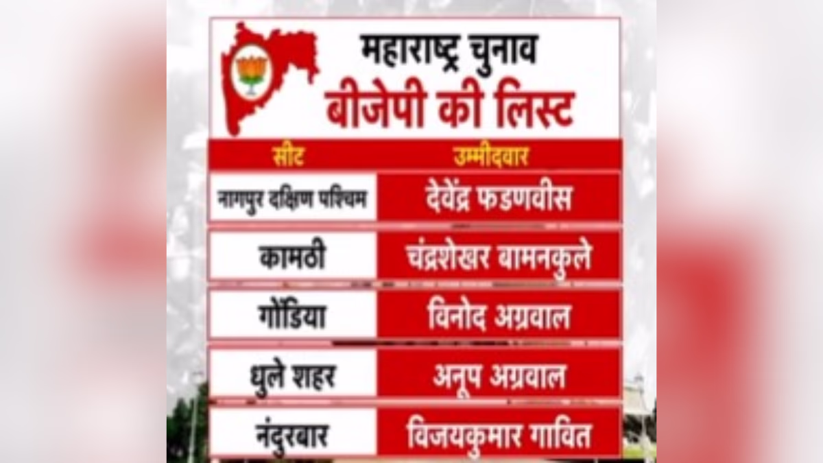 BJP has unveiled its first candidate list for the Maharashtra Assembly elections, featuring 99 candidates. Devendra Fadnavis will contest from Nagpur Southwest, while state BJP president Chandrashekhar Bawankule is set for the Kamthi seat. Additionally, Nitish Narayan Rane will represent the Kankavli seat and Ram Kadam is nominated from Ghatkopar West.