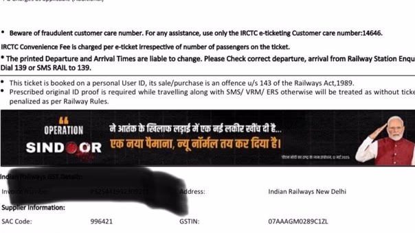 Congress leader and former CM Kamal Nath's media advisor, Piyush Babele, shared a railway ticket on social media platform X on Sunday, highlighting how 'the Modi government uses advertising techniques by marketing Operation Sindoor on railway tickets as a Modi advertisement. They are seemingly turning the valor of the armed forces into a product to sell. This approach leans more towards transaction rather than patriotism.'