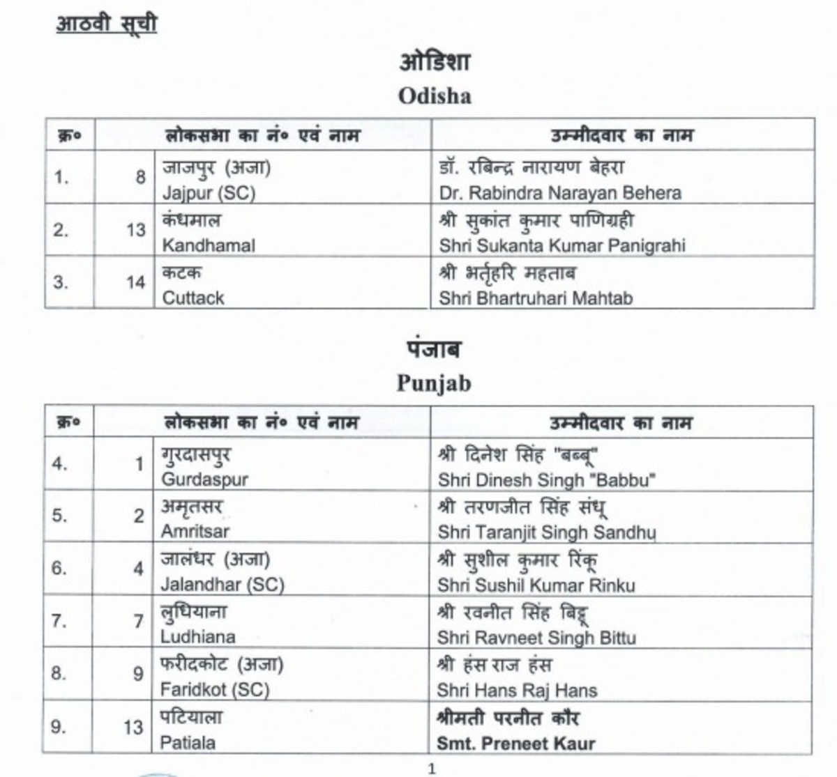 Rebel AAP member Sushil Kumar Rinku and defectors from Congress, Ravneet Singh Bittu and Parneet Kaur have been given tickets by BJP. Recent headlines were made when Ravneet Bittu, grandson of former Punjab CM Beant Singh, switched to BJP, leaving a void in Congress. Bittu, a sitting MP from Ludhiana and once close to Congress leader Rahul Gandhi, joined BJP just four days ago, expressing his intent to push Punjab forward.