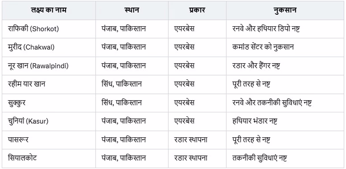 About 15 BrahMos missiles targeted 11 Pakistani airbases, including Rafiqui, Murid (Chakwal), Noor Khan (Rawalpindi), Rahim Yar Khan, Sukkur, and Chunian (Kasur). Radars in Pasrur and Sialkot were also struck.