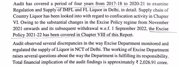 This CAG audit report regarding the liquor policy covers four periods from 2017-2018 to 2020-2021. The report, tabled in the assembly, reveals that changes to Delhi's liquor policy resulted in a loss of 2,002 crores.