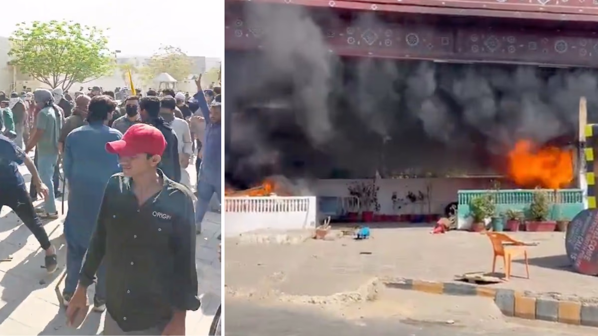 According to reports, protesters in Karachi assaulted the main gate of the consulate using hammers and iron rods, breaking it down as they forced their way in. During the protest, firebombs were hurled, igniting multiple parts of the consulate's structure, sending plumes of black smoke into the sky.