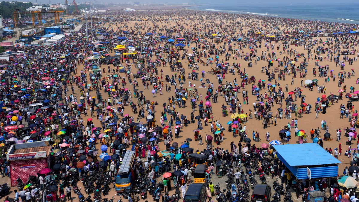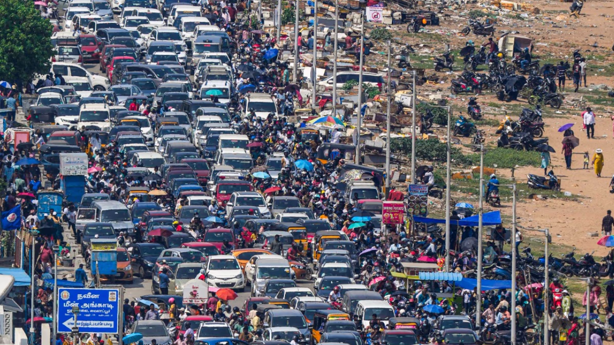 Marina Beach was teeming with crowds. As the event concluded, the throngs attempted to leave towards Kamarajar Salai, causing a complete traffic standstill. Exhausted by the heat and the crowds, many resorted to resting on the roadside.