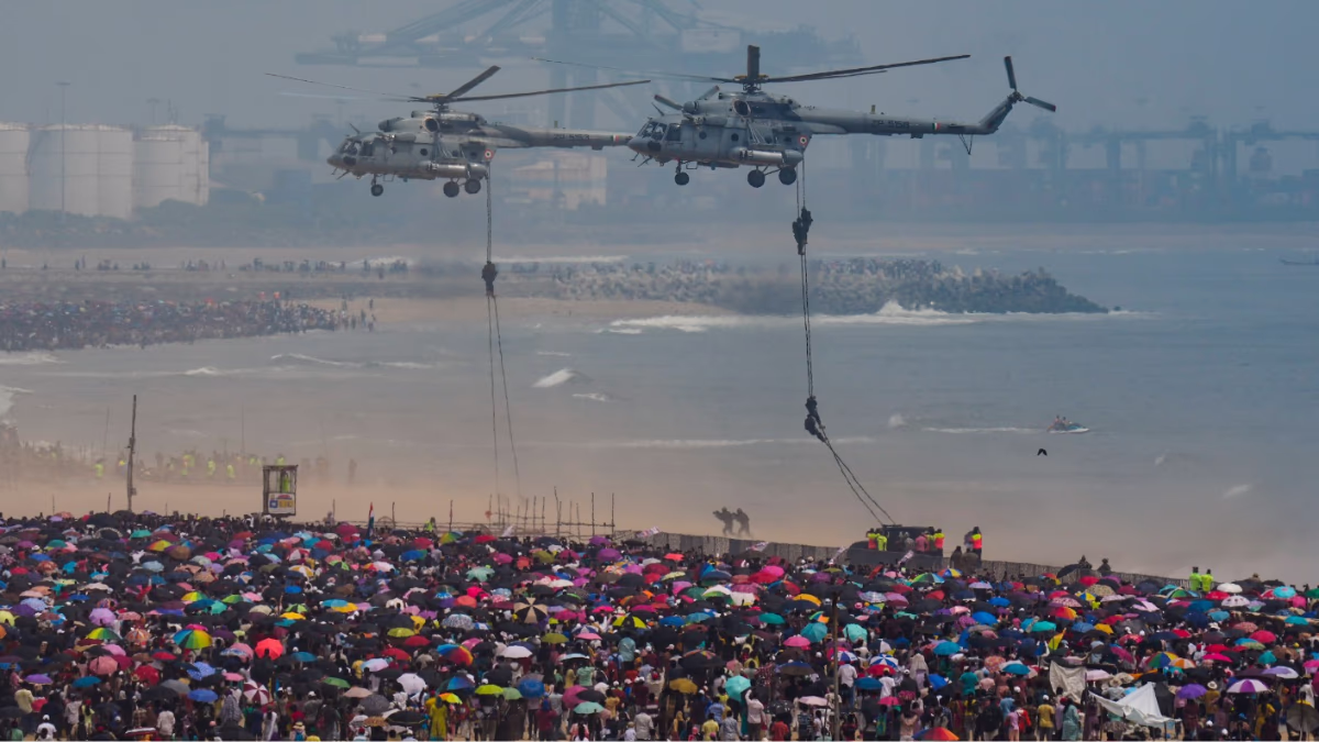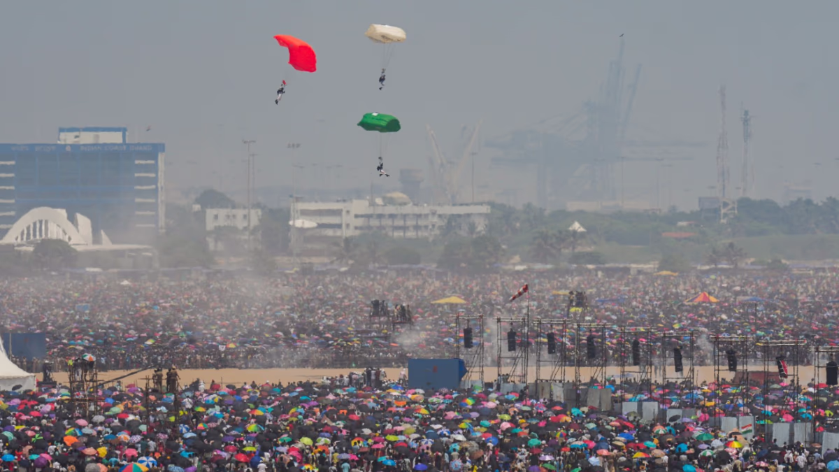 On the 92nd anniversary of the Indian Air Force, a spectacular air show was held on Marina Beach in Chennai. Despite the oppressive humidity, thousands of people thronged to the beach to witness the event. Unfortunately, three individuals succumbed to dehydration and 230 needed medical attention.