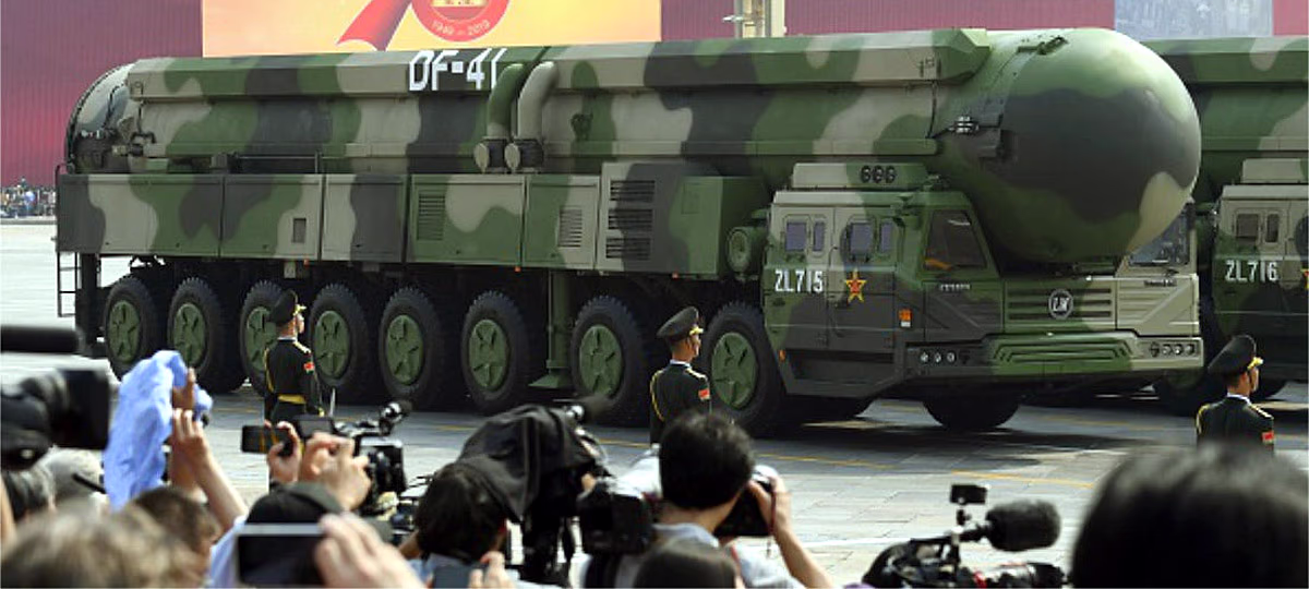 Since 2017, the Dongfeng-41 has been part of China's military arsenal. It is China’s fourth-generation solid-fueled, road-mobile Intercontinental Ballistic Missile. This strategic nuclear missile weighs 80,000 kilograms, with a length of 72 feet and a diameter of 7.5 feet. It can be equipped with 8 warheads of 250 kilotons each or 10 warheads of 150 kilotons each, thanks to MIRV technology, allowing it to target multiple sites with a single missile.