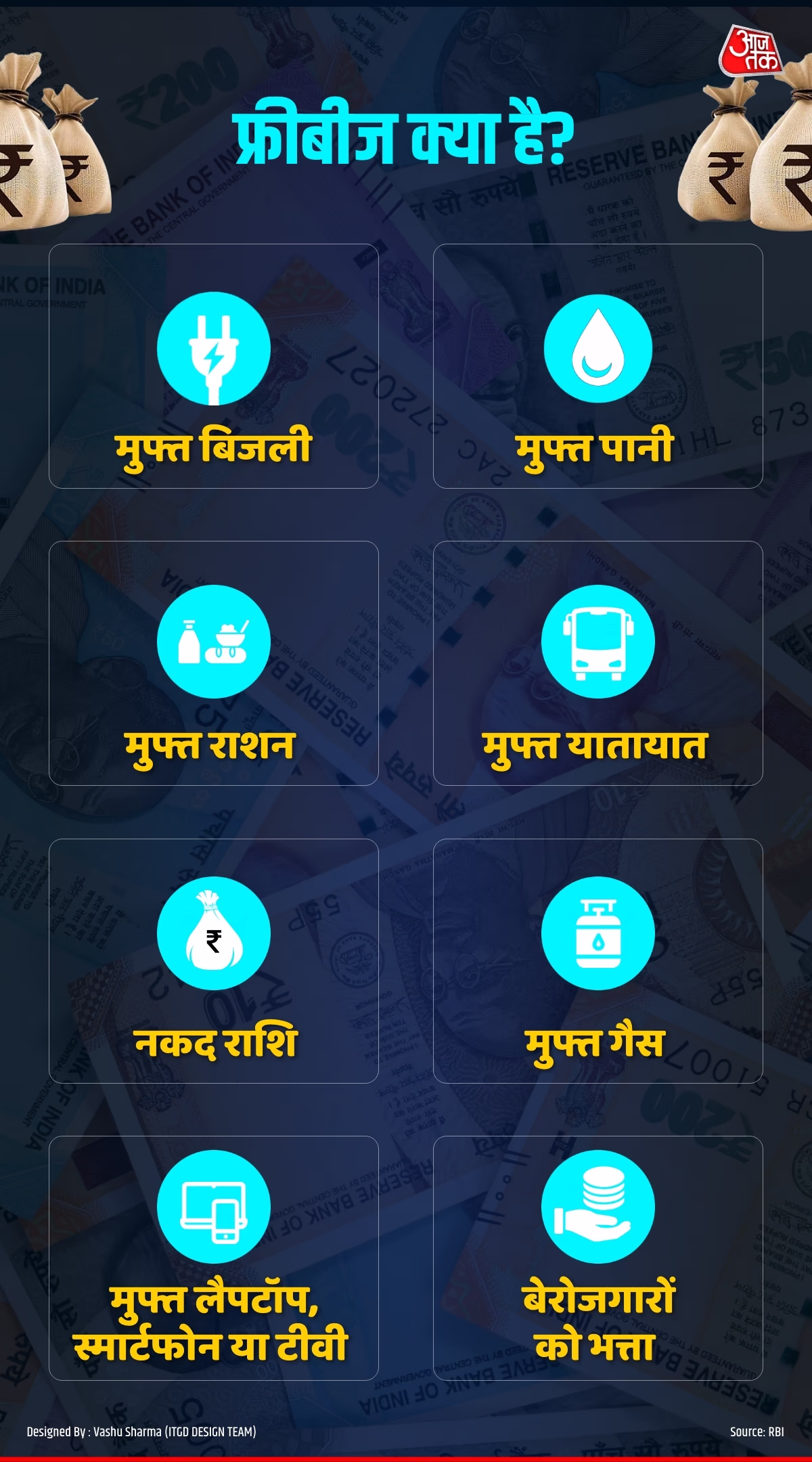 A 2022 Reserve Bank report describes freebies as welfare items or services provided free of charge. In India, this refers to various items provided to citizens free of cost, often promised by political parties ahead of elections expecting votes in return.