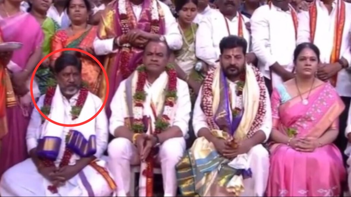 In this widely shared video, Chief Minister Revanth along with ministers Uttam Kumar, Kumar Reddy, Venkat Reddy, and others are seen seated on chairs, while Deputy CM Bhatti Vikramarka is on the ground.