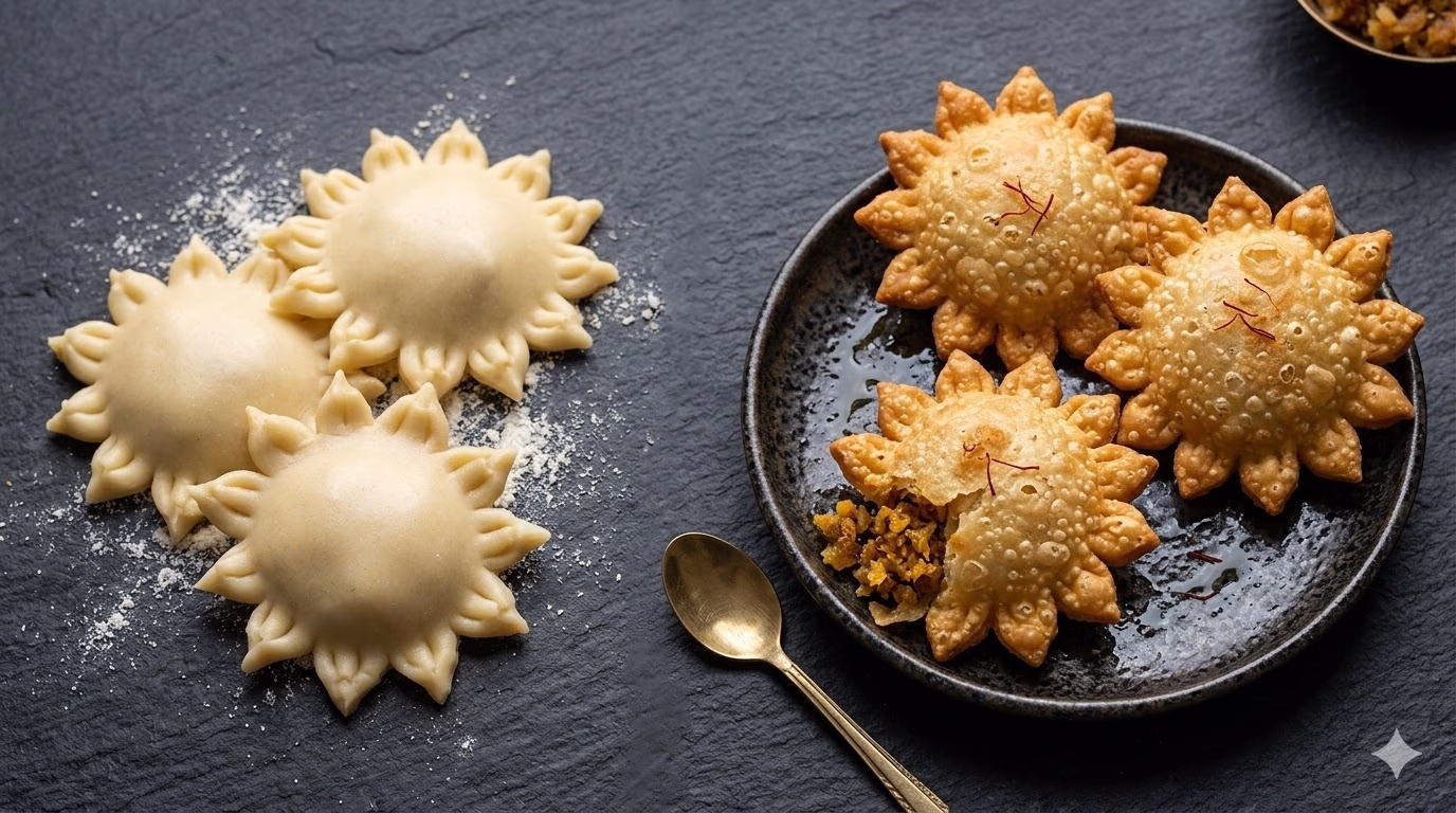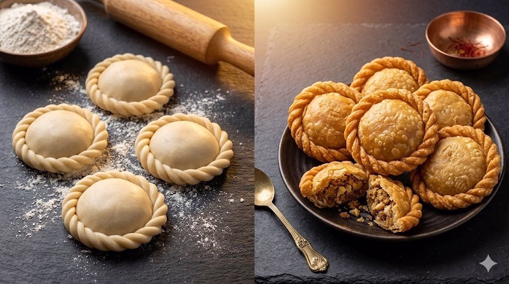 This makes the Gujiya resemble a diya, looking extraordinarily beautiful.
