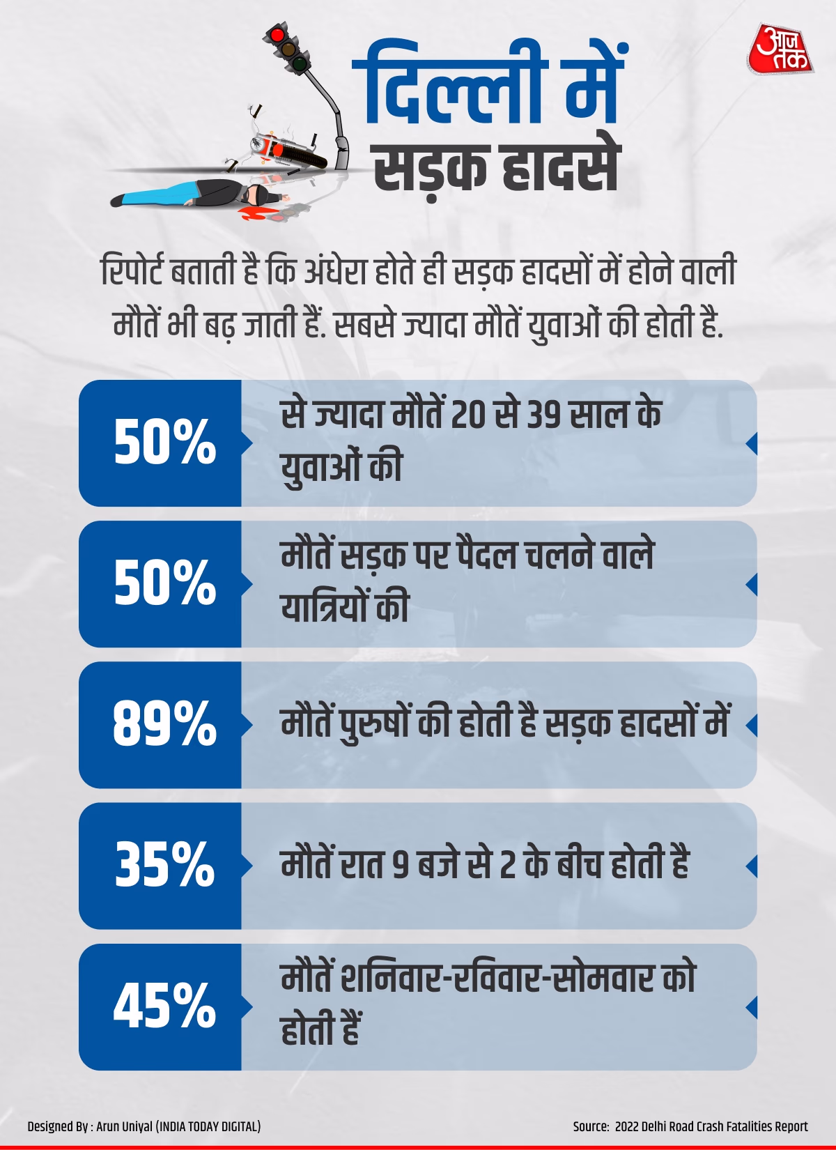The report points out that 81% of road accidents in Delhi involved heavy and light motor vehicles (LMVs). Meanwhile, 59% were hit-and-run cases. In hit-and-run incidents, 57% of the victims were pedestrians, followed by those on two-wheelers (33%).