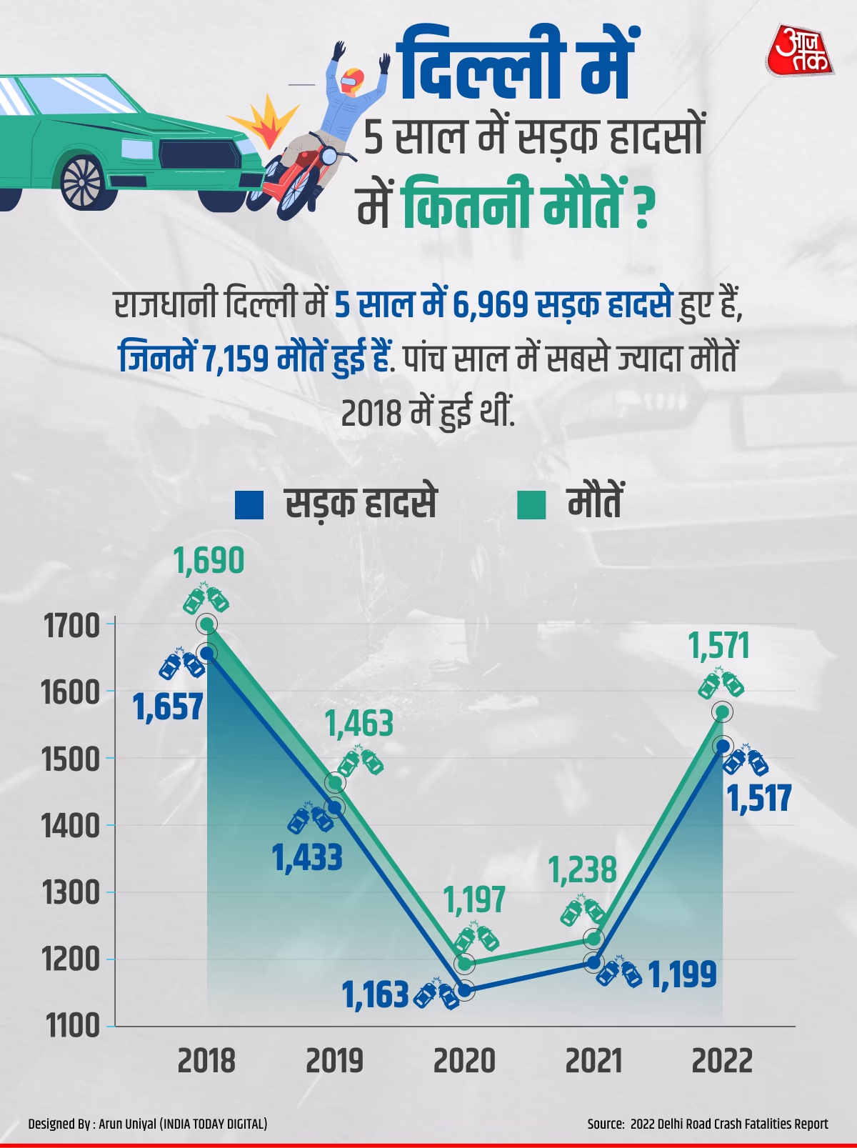 This report, named 'Delhi Road Crash Fatalities', provides data up to 2022. It highlights that in 2022, 1,517 lethal road accidents occurred in the capital, resulting in 1,571 fatalities. This means, on average, four people die in road accidents daily in Delhi.