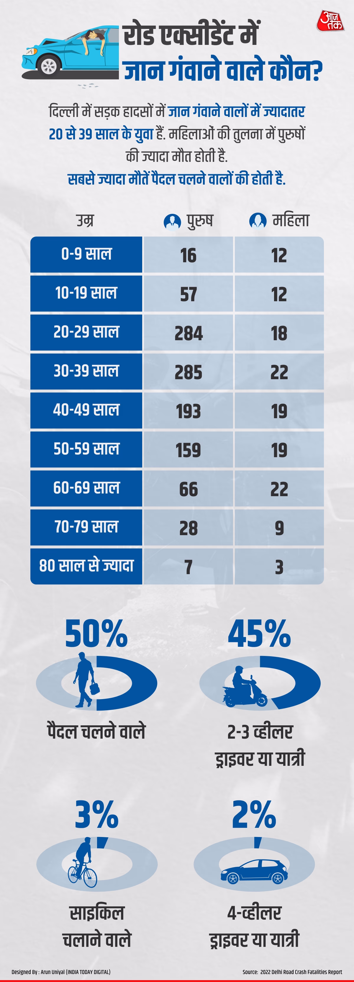 The Delhi government’s report shows that most victims of road accidents are men. In Delhi, 89% of the road accident fatalities are men. Furthermore, most of the deceased are young.