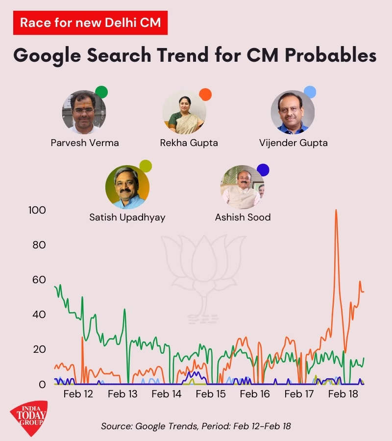 In the four days following February 8, Parvesh Verma was the most searched Delhi BJP leader on Google, followed by Rekha Gupta. However, searches for Rekha Gupta have surged in the past two days.
