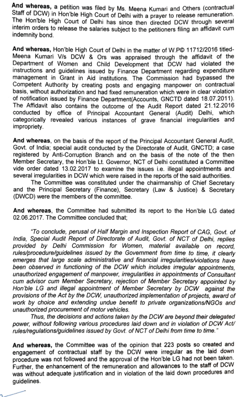 The reasoning behind the mass dismissal from the Delhi Commission for Women points to allegations that the DCW Chairperson (Swati Maliwal) made these appointments without the necessary approval from the Finance Department or the Delhi LG. Moreover, the DCW was not empowered to make such appointments of contract employees, given that only 40 positions are officially sanctioned as per the DCW Act.