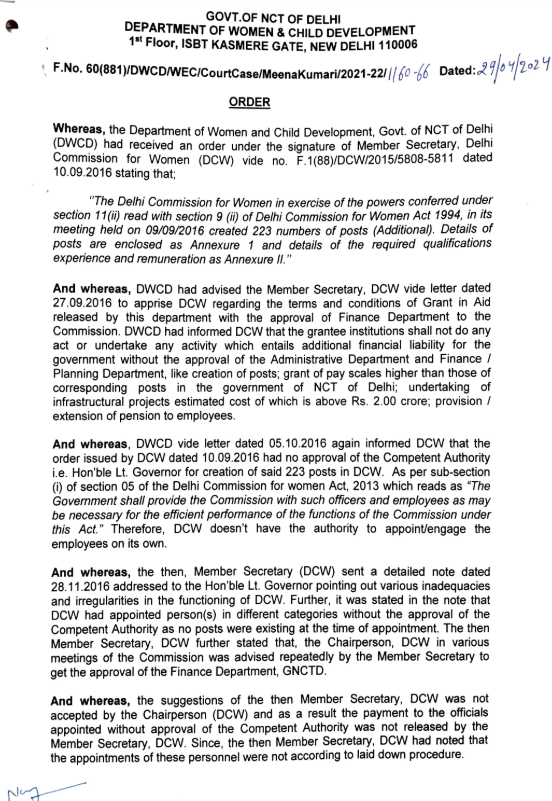 In an unprecedented move, the Delhi Commission for Women has terminated the employment of 223 staff members with immediate effect. This directive was issued by Delhi's Lieutenant Governor, VK Saxena, basing his decision on an investigation report submitted to the LG in 2017.